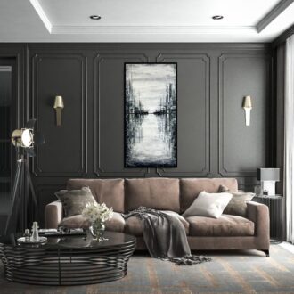 Obraz czarno biały ręcznie malowany na płótnie „Moje miasto” N2181