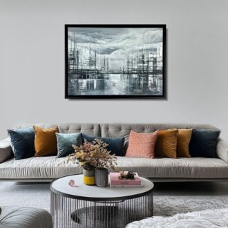 Obraz do salonu „Monochromatyczne miasto” abstrakcja w passe partout 2206A