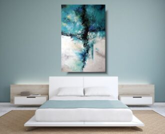 • Abstrakcja duży turkusowy obraz "Tornado" obraz malowany 1574AR