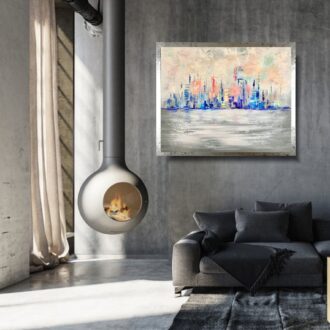 Obraz kolorowy ręcznie malowany na płótnie „Pastelowe miasto” 2074A