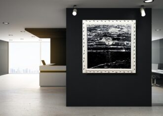 • Nowoczesny obraz w czerni "Nokturn" abstrakcja w białej ramie 2094A