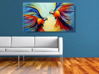 • Kolorowe obrazy nowoczesne ze zwierzętami "Kolorowe papugi" obraz akrylowy 1755A