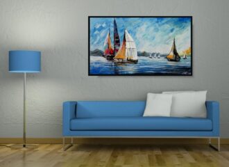 • Obraz ręcznie malowany "Żaglówki na wietrze" obrazy marynistyczne na płótnie 1218A