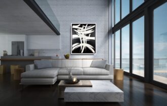 Czarno biała abstrakcja „Znak” duży obraz w ramie 2159A