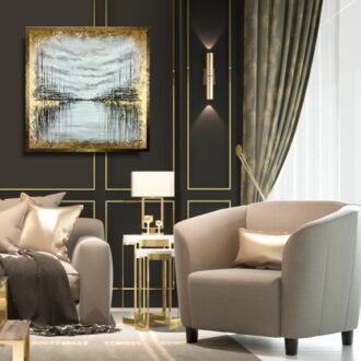 • Kolekcja autorska abstrakcja złoty pył obraz w ramie 2084A