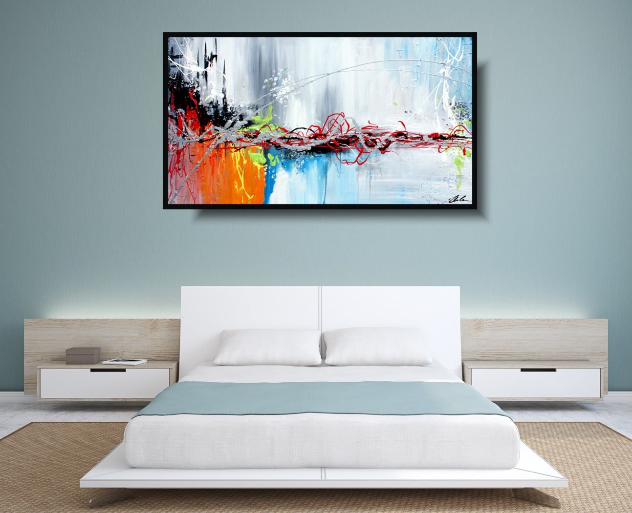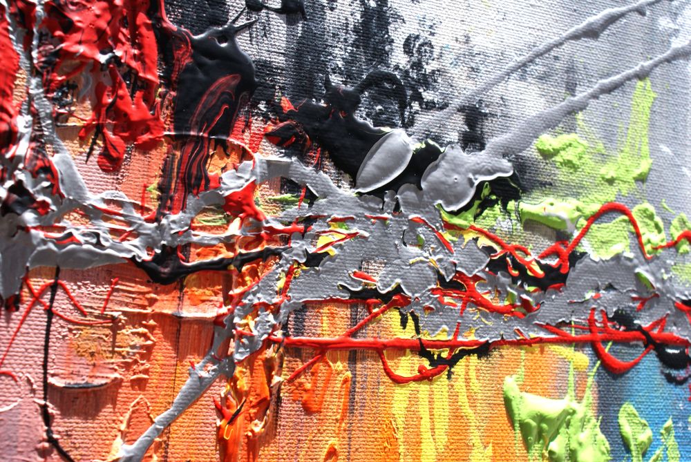Obraz do biura abstrakcja „Kolory dzieciństwa” obrazy nowoczesne na płótnie 1042A w dużym formacie, pełen pozytywnej energii w żywej kolorystyce. Obraz nowoczesny jest niekonwencjonalny pod względem formalnym jak i warsztatowym. Do namalowania tego obrazu użyto całej palety barw, co daje efekt nowoczesnego designu. Obraz może ożywić modne jednobarwne wnętrze – salon, biuro, korytarz. W tej chwili są modne wnętrza monochromatyczne, minimalistyczne w których obraz to jedyne źródło koloru. Na specjalne życzenie Klientów wykonujemy także obrazy na zamówienie. Zapraszamy do bezpłatnej konsultacji mailowej sklep@dobrasztuka.pl Bardzo chętnie pomożemy w doborze odpowiedniego obrazu do wnętrza.