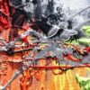 Kolorystyka obrazu: błękitny, pomarańczowy, czerwony, zielony, żółty, srebrny, biały, czarny,