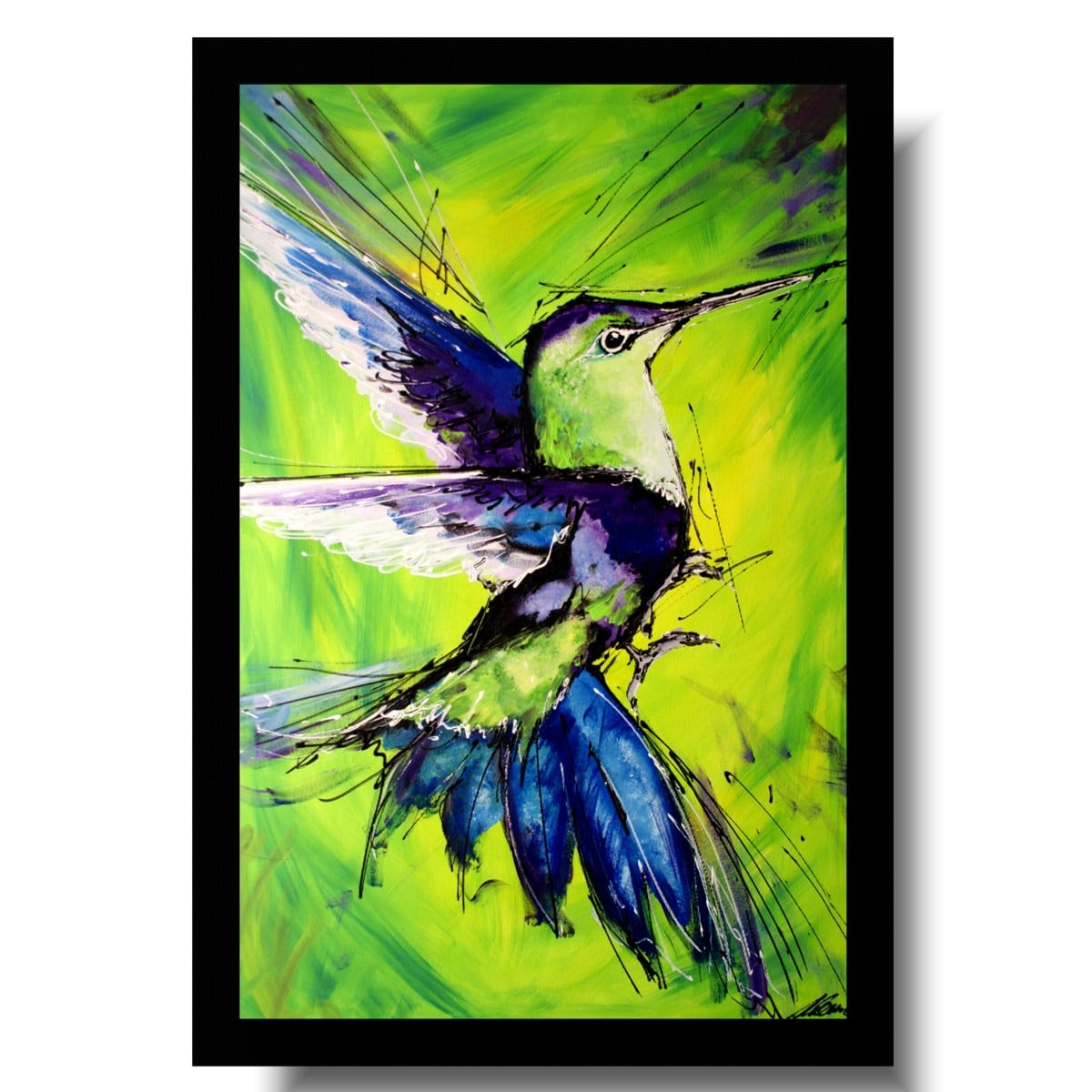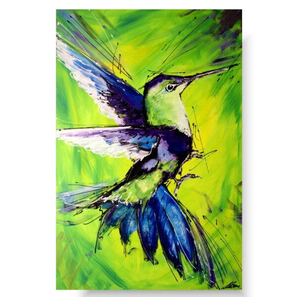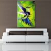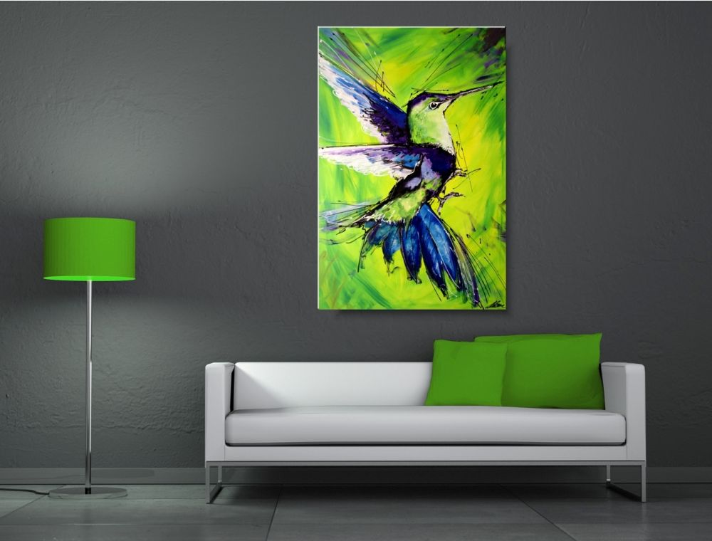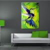 Obrazy ręcznie malowany na płótnie „Niebieski koliber” 1735A obraz ze zwierzętami w bajecznie kontrastowej kolorystyce. Do namalowania tego obrazu użyto różnych odcieni tylko dwóch kolorów: niebieskiego i zieleni, co daje efekt nowoczesnego designu.