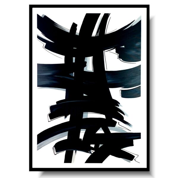 Czarno biały obraz w ramie abstrakcja „Japoński znak” w minimalistycznej czarno-białej kolorystyce i w czarnej matowej ramie. Idealnie pasuje do modnego wnętrza takiego jak salon, sypialnia, przedpokój czy biuro. Obrazy abstrakcyjne to nasza specjalność dlatego tworzymy w dzieła w doskonałym guście i zgodnie z najnowszymi trendami. Każdy obraz to ciekawa dekoracja lub niebanalny pomysł na prezent. Posiadamy wiele modnych wzorów obrazów oraz klasycznych sprawdzonych motywów. Gdyby jednak zamarzyło się Państwu coś zupełnie odmiennego – malujemy obrazy na zamówienie, portret na zamówienie, obrazy kwiaty, obrazy abstrakcje obrazy postacie. Możemy stworzyć także niepowtarzalną abstrakcję w dowolnym wymiarze, kolorystyce i z oryginalnym wzorem. Możemy scalić w jeden obraz kilka wzorów lub podzielić obraz jednoczęściowy na kilka mniejszych części. Masz jakiś pomysł? Zapraszamy do kontaktu!