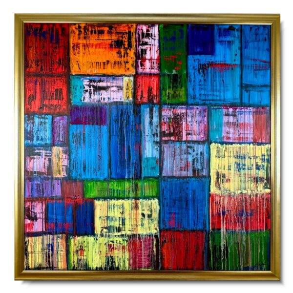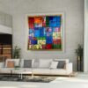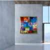 Duży obraz abstrakcja kolorowa „Colors of life” w złotej ramie 2105A to ogromny kwadratowy obraz naszego autorstwa w modnej, abstrakcyjnej kolorystyce i srebrnej klasycznej ramie. Kolory użytej farby akrylowej dodają energii i wigoru. Piękna złota cieniowana gruba rama sprawi, że obraz będzie prezentował się perfekcyjnie w każdym wnętrzu – nowoczesnym i klasycznym. Niepowtarzalny obraz idealnie ozdobi duży salon czy modne biuro.