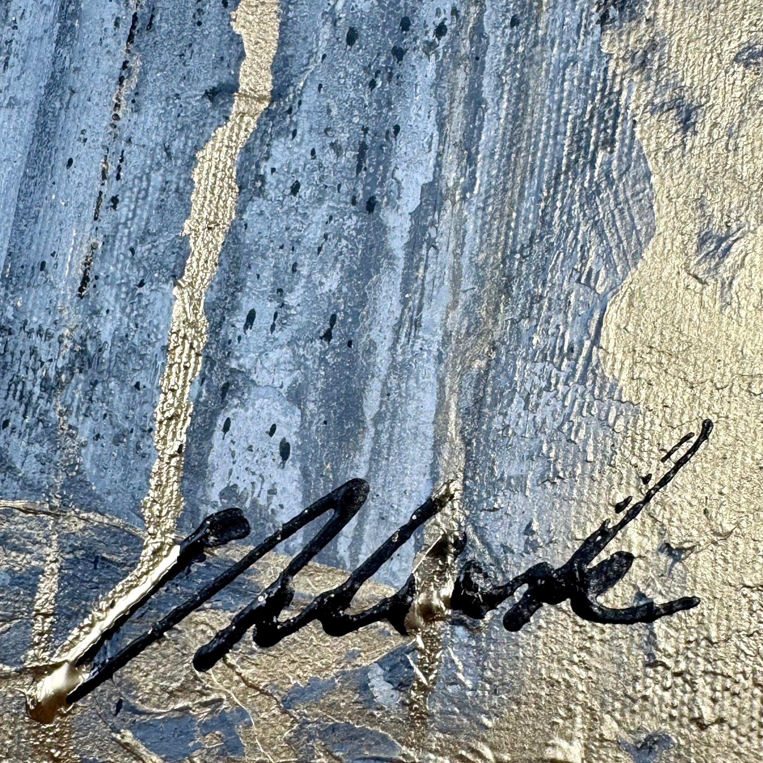 Kolorystyka obrazu: złoty, szary, błękitny biały, czarny