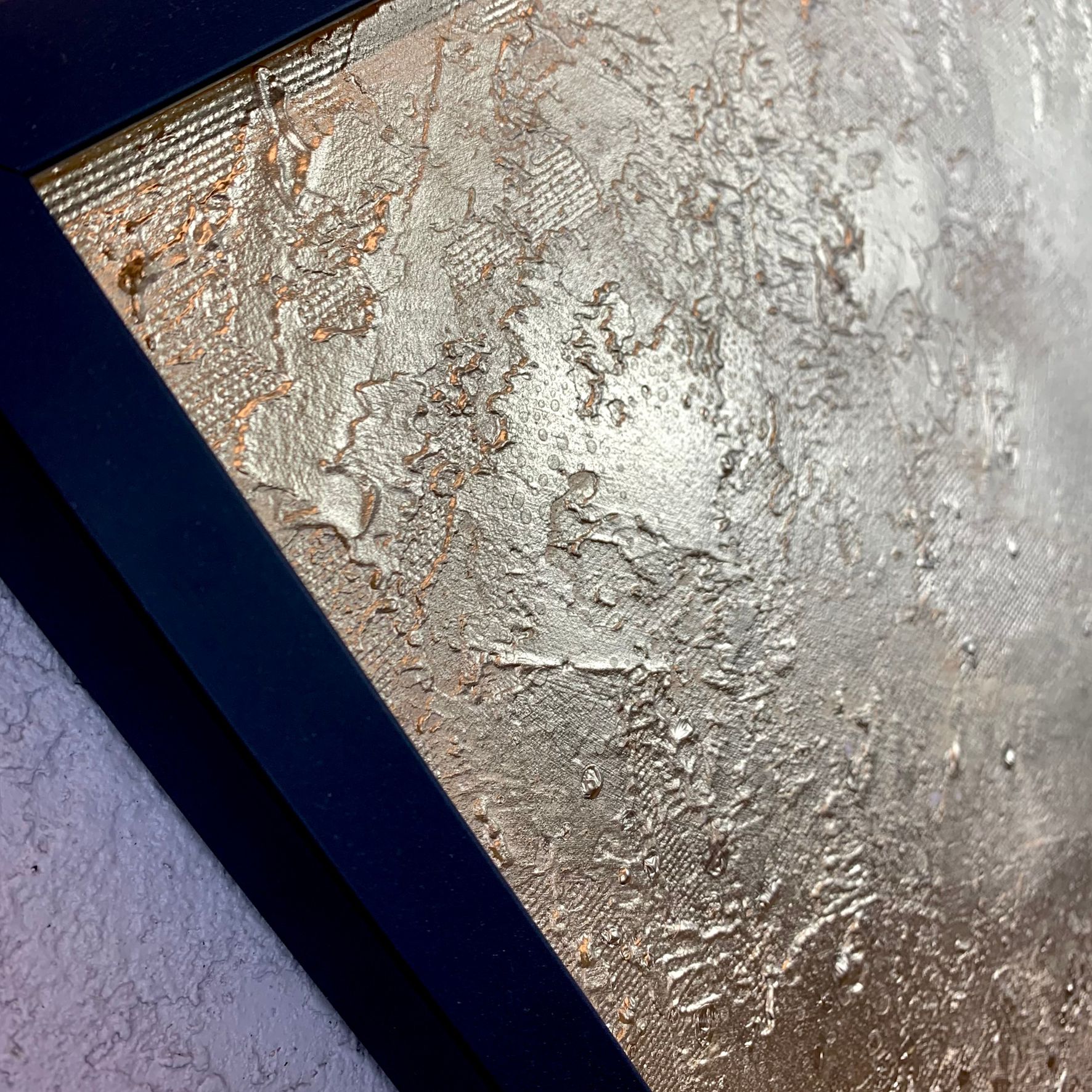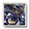 Kolorystyka obrazu: złoty, granatowy, niebieski, szary, biały, czarny, złoty brokat + czarna matowa rama (listwa szerokości 1,5cm)