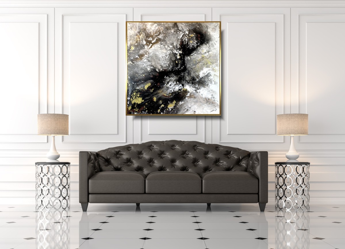 Kolekcja autorska abstrakcja złoty pył naszego autorstwa w eleganckiej, ponadczasowej kolorystyce i złotej rzeźbionej lub cienkiej nowoczesnej ramie. Kolory użytej farby akrylowej przenikają się, dodają tajemniczości i splendoru dlatego nikt nie przejdzie obok niego obojętnie. Niepowtarzalny obraz tworzony metodą pouringu z dodatkiem brokatu. Nowoczesne abstrakcje to nasza specjalność dlatego poświęcamy się im bez reszty. Wykonujemy także obrazy marynistyczne, obrazy kwiaty, obrazy aniołów, obrazy dzielone – dyptyk, tryptyk, fortyk, obrazy jednoczęściowe w dużym formacie. Możemy namalować każdy obraz z naszej oferty w zmienionych wymiarach lub kolorystyce, możemy namalować obraz dzielony na jednej części lub obraz jednoczęściowy podzielić na kilka części.