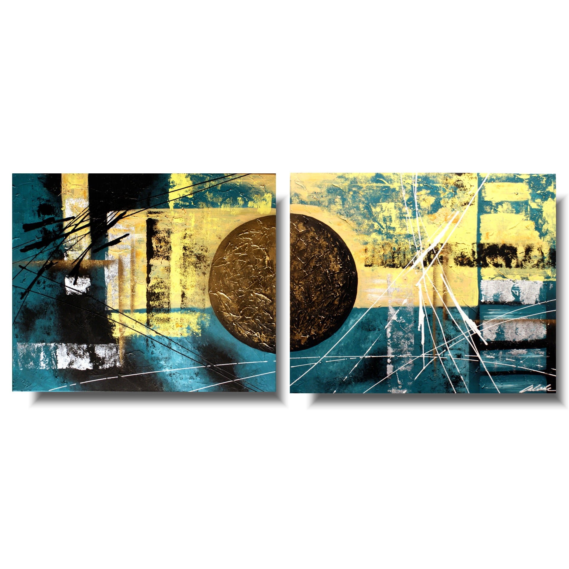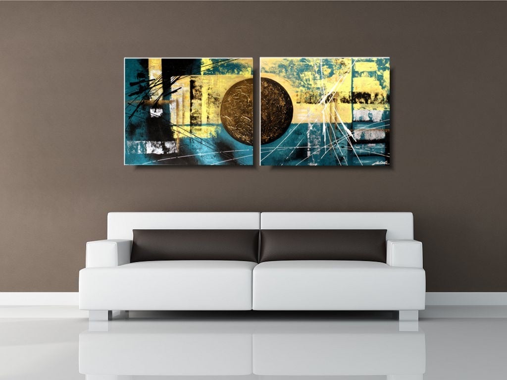 Modna abstrakcja obraz nowoczesny składa się z 2 części stanowiących komplet.