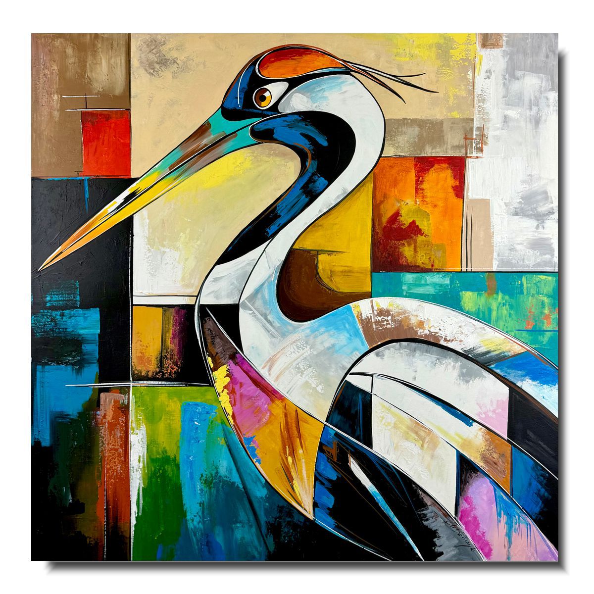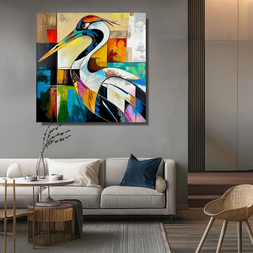 Nowoczesny kolorowy obraz abstrakcyjny „Dostojna czapla” 2361A składa się z 1 części