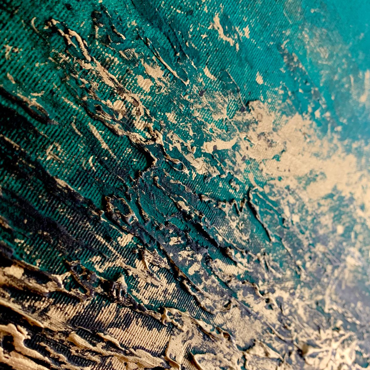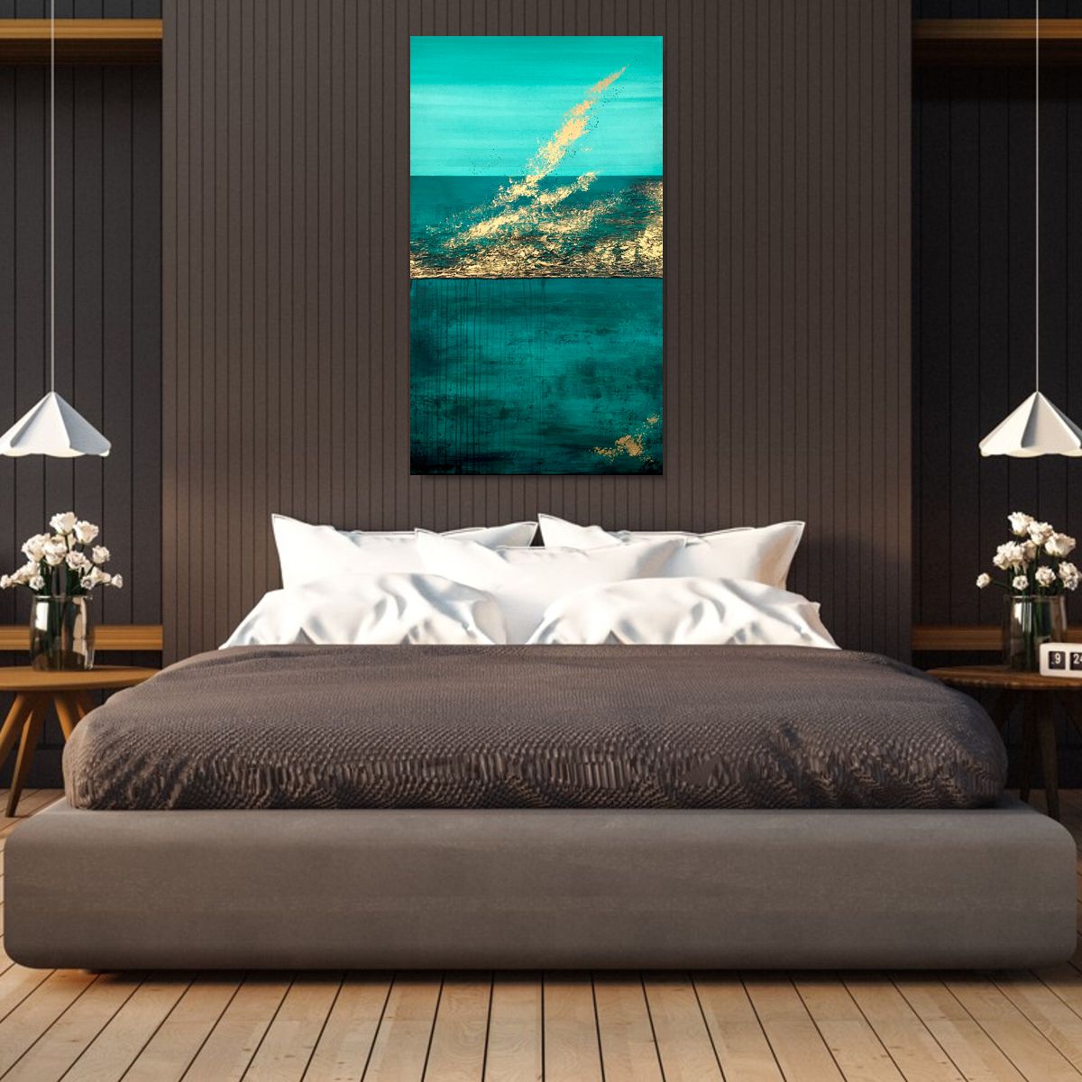 Nowoczesny obraz abstrakcja „Malachitowy klejnot” 2124A” w swym przedstawieniu ukazuje tropikalny pejzaż wzbogacony blaskiem złota. Malachit jako kamień łączy w sobie różne odcienie zieleni również przypomina butelkową zieleń i kolor szmaragdowy. Kolor ten został doceniony już przez starożytnych Greków, którzy malowali nim swoje świątynie. Nowoczesny obraz abstrakcja malachitowy klejnot naszego autorstwa w zdecydowanej kolorystyce z dodatkiem złota. Obraz idealnie ozdobi nowoczesny salon czy modne biuro. wykonany jest ręcznie na płótnie farbami akrylowymi. Wykonujemy obrazy marynistyczne, obrazy kwiaty, obrazy aniołów, obrazy dzielone – dyptyk, tryptyk, fortyk, obrazy jednoczęściowe w dużym formacie. Możemy namalować każdy obraz z naszej oferty w zmienionych wymiarach lub kolorystyce, możemy namalować obraz dzielony na jednej części lub obraz jednoczęściowy podzielić na kilka części.