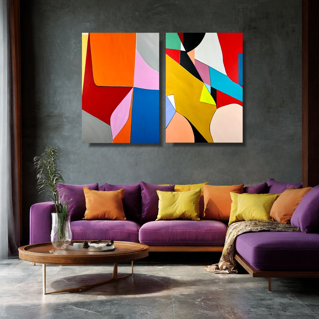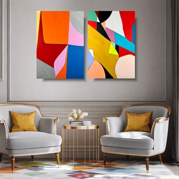 Nowoczesny obraz abstrakcyjny dyptyk „Energia koloru” 2362A to wyjątkowy dyptyk abstrakcyjny, który przyciąga uwagę dynamiczną kompozycją i odważnym zestawieniem barw. Organiczne kształty, geometryczne podziały i intensywne kolory tworzą harmonijną, a jednocześnie ekspresyjną całość. Obraz doskonale sprawdzi się jako centralny punkt nowoczesnego wnętrza – salonu, biura, loftu czy przestrzeni komercyjnej. To propozycja dla osób ceniących sztukę współczesną, design i oryginalność. Dyptyk wnosi do wnętrza energię, głębię i artystyczny charakter, jednocześnie pozostając uniwersalnym elementem aranżacji.
