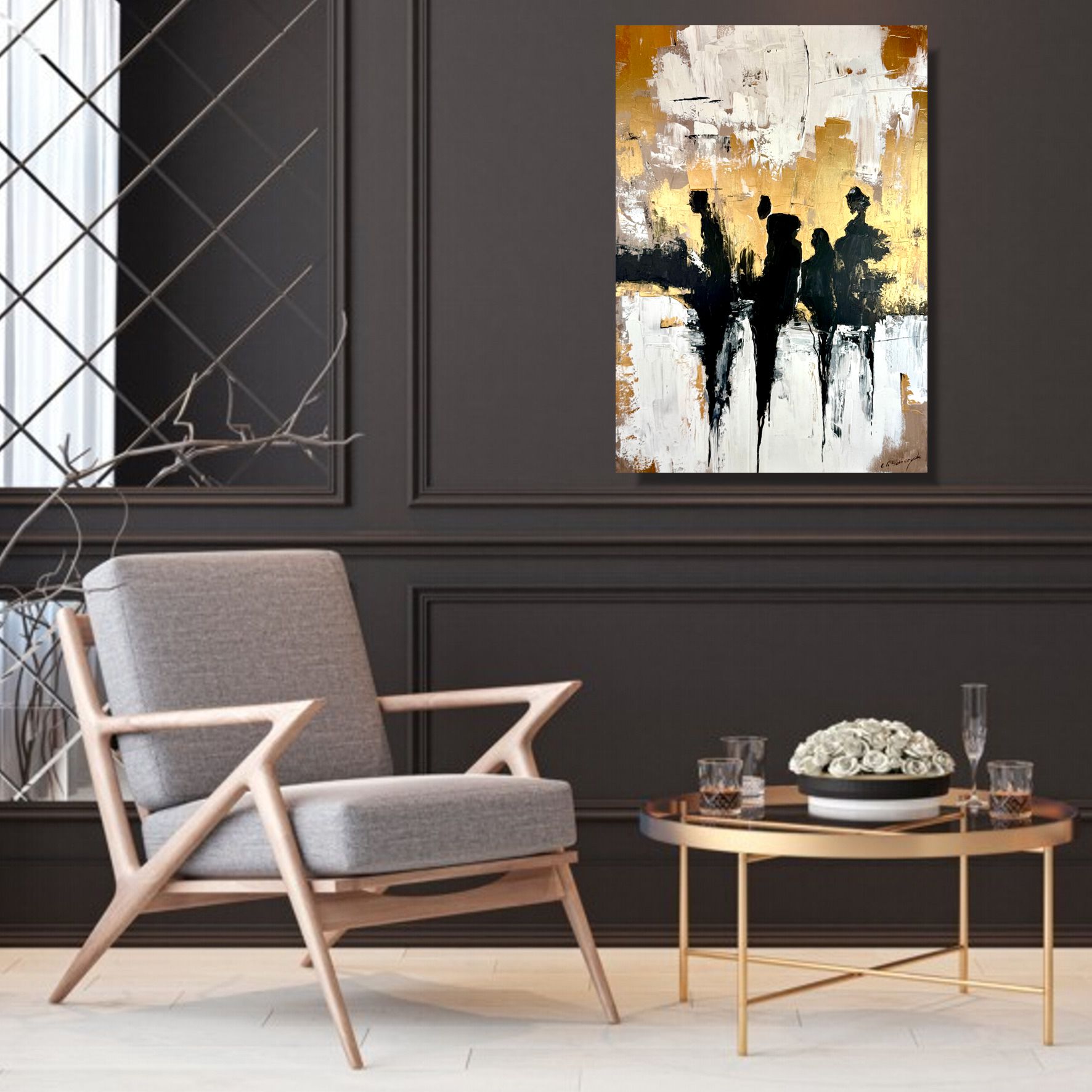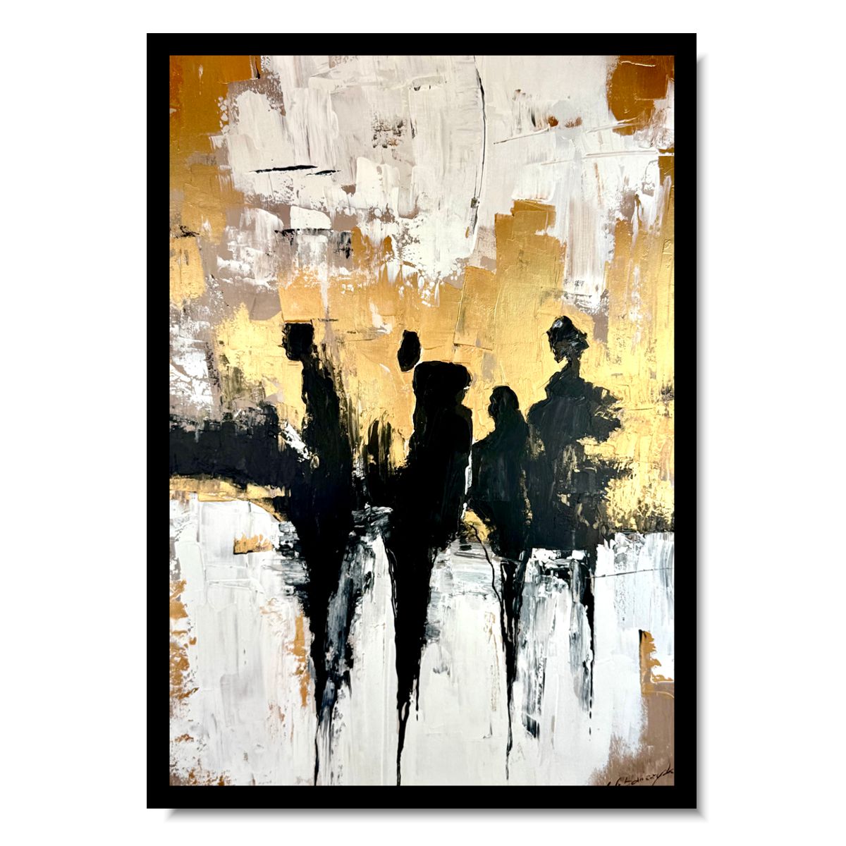 Nowoczesny pionowy obraz „Złote pokolenie” 2341A z grubą fakturą farby ręcznie malowany na płótnie do doskonała dekoracja salonu, sypialni czy biura. Nasze obrazy są wykonywane z dbałością o każdy szczegół, sygnowane podpisem autorki.