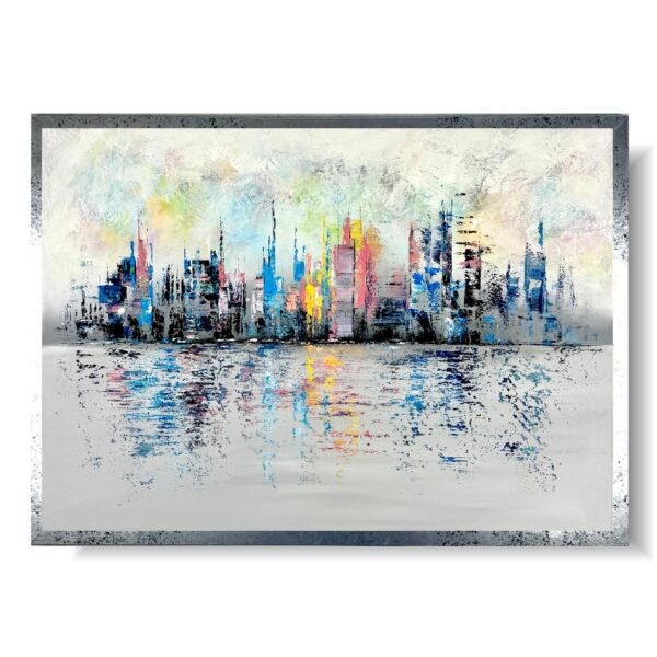 Obraz abstrakcja kolorowe miasto „Kolorowe miasto w oddali” składa się z 1 części + rama w komplecie