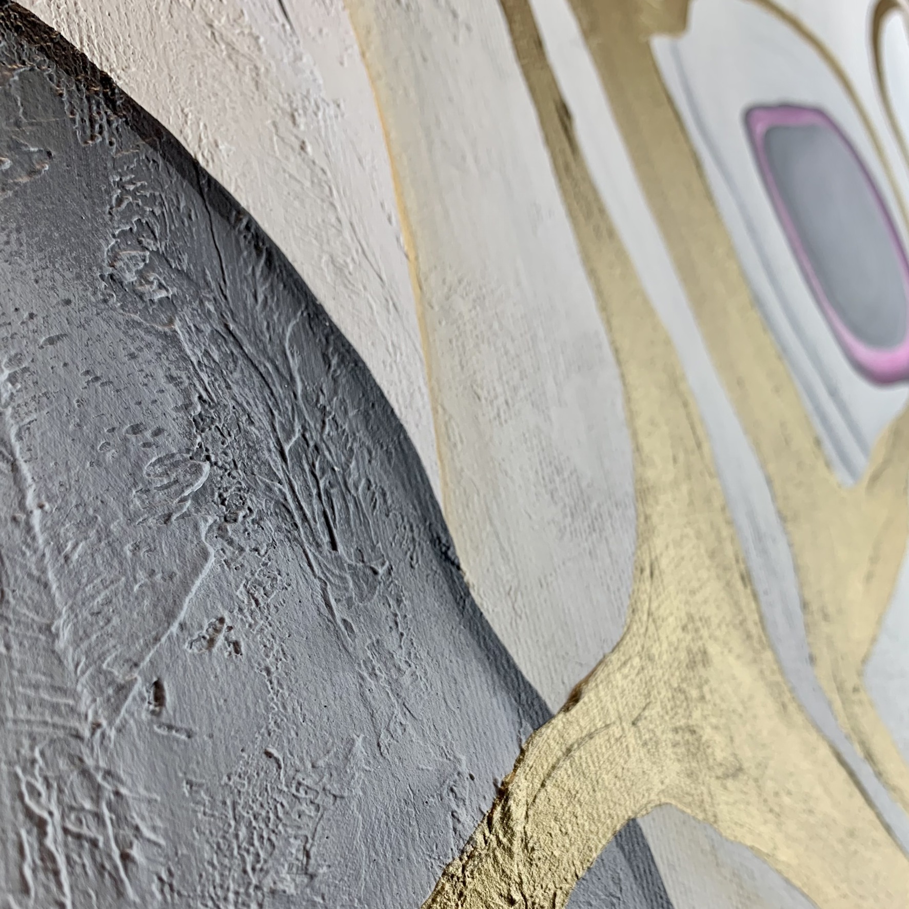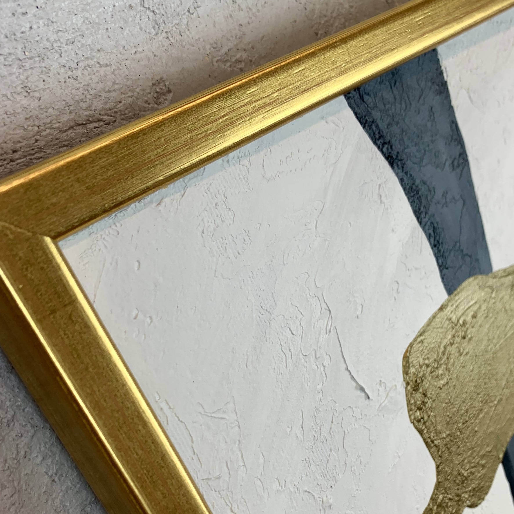 Kolorystyka obrazu: brudny róż, szary, biały, czarny, złoty + złota rama (szerokość listwy 1,5cm)