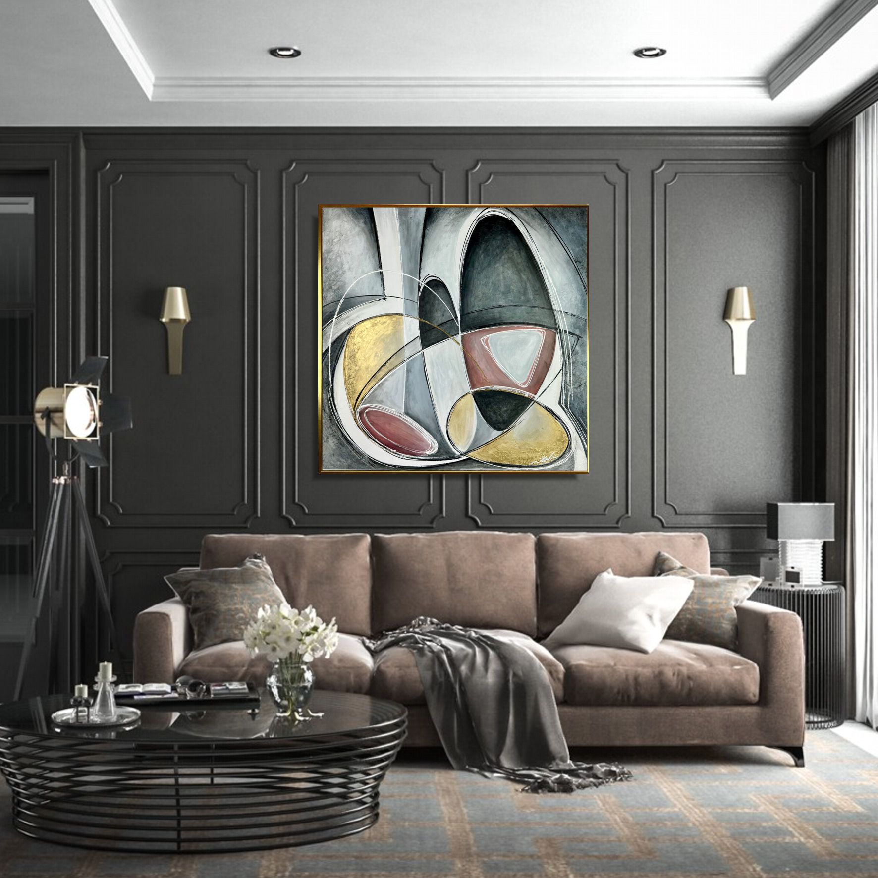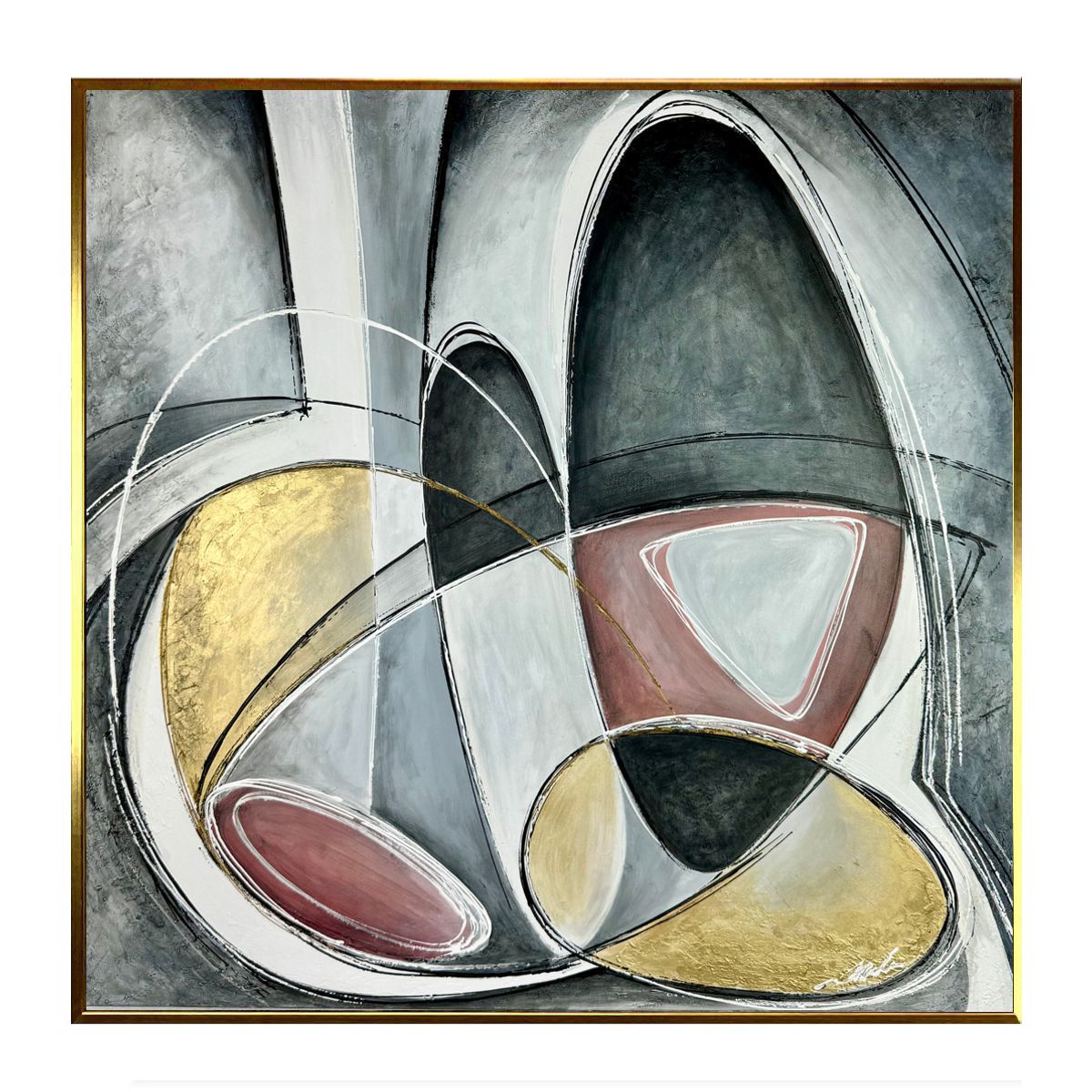 Obraz ręcznie malowany na płótnie „Koła” 2172A to obraz, który łączy w sobie rygor i wyrafinowanie geometrii z wyjątkowością form. Jest to dzieło, które skupia uwagę widza i zachęca do refleksji nad złożonością i pięknem abstrakcyjnej sztuki. Obraz abstrakcyjny bowiem to poezja bez słów, to melodia barw i kształtów, tańcząca na płótnie jak wiatr w starym lesie. To hołd dla wyobraźni, gdzie każdy patrzący jest twórcą własnej opowieści.