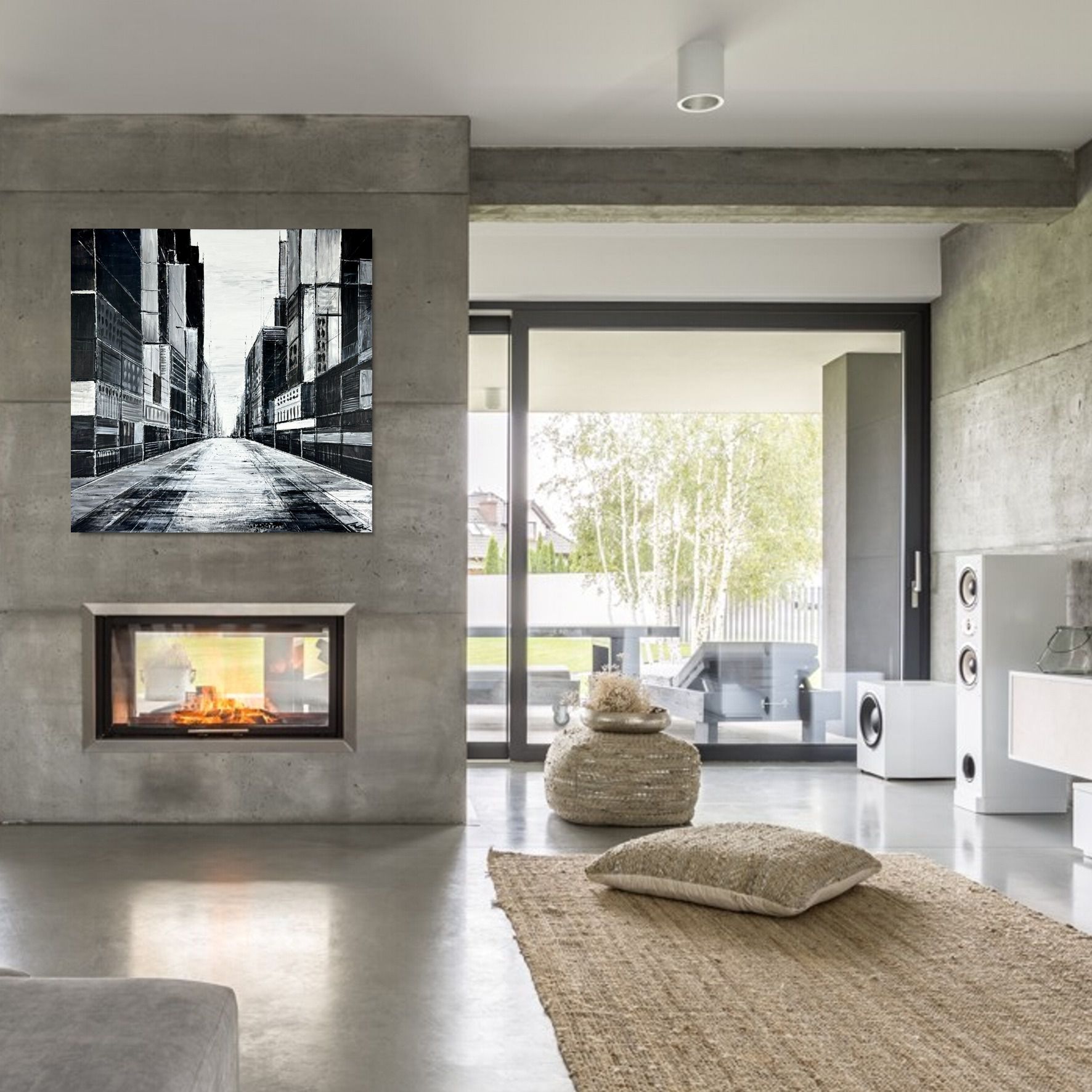 Obraz czarny monochromatyczne miasto „Monochromatyczne miasto” składa się z 1 części