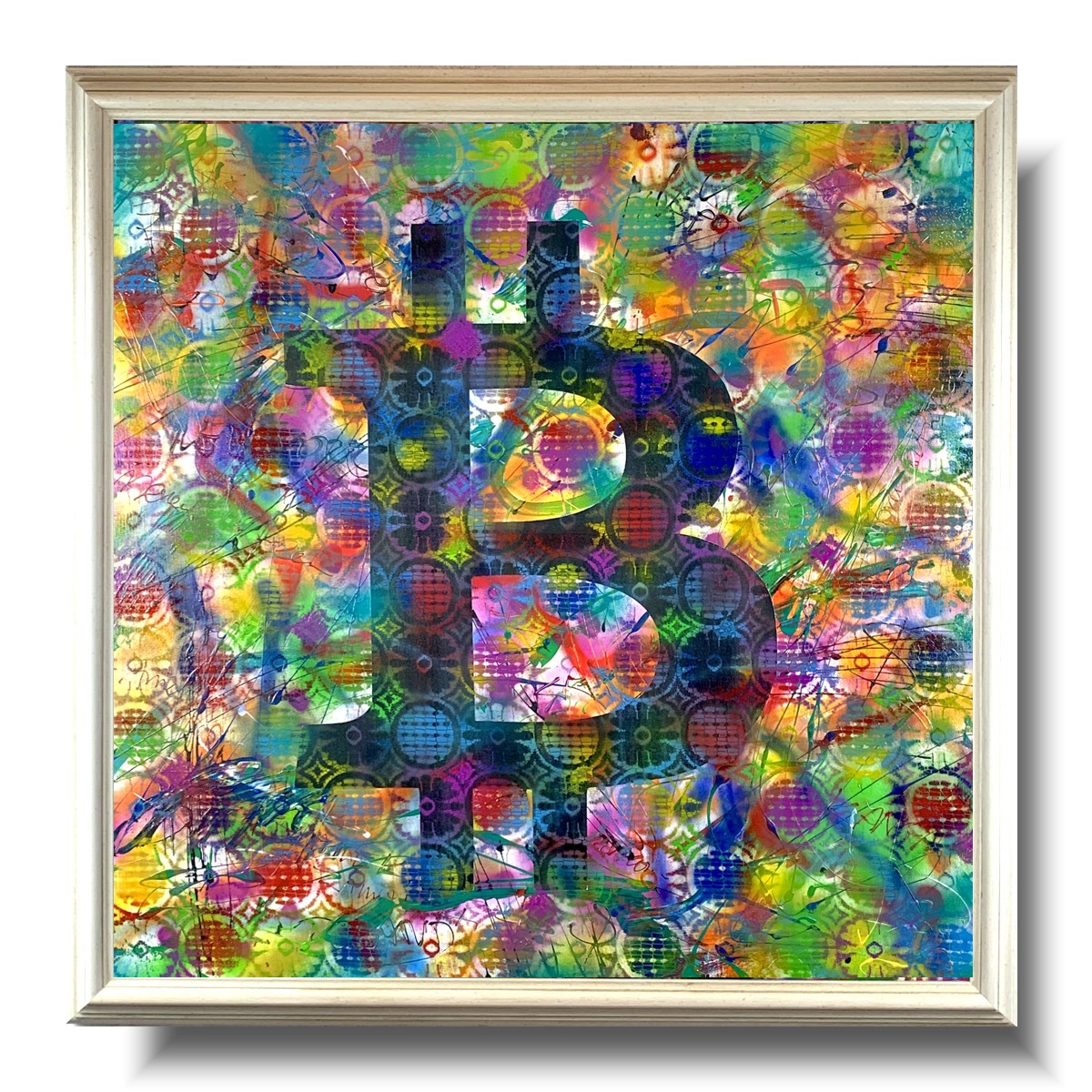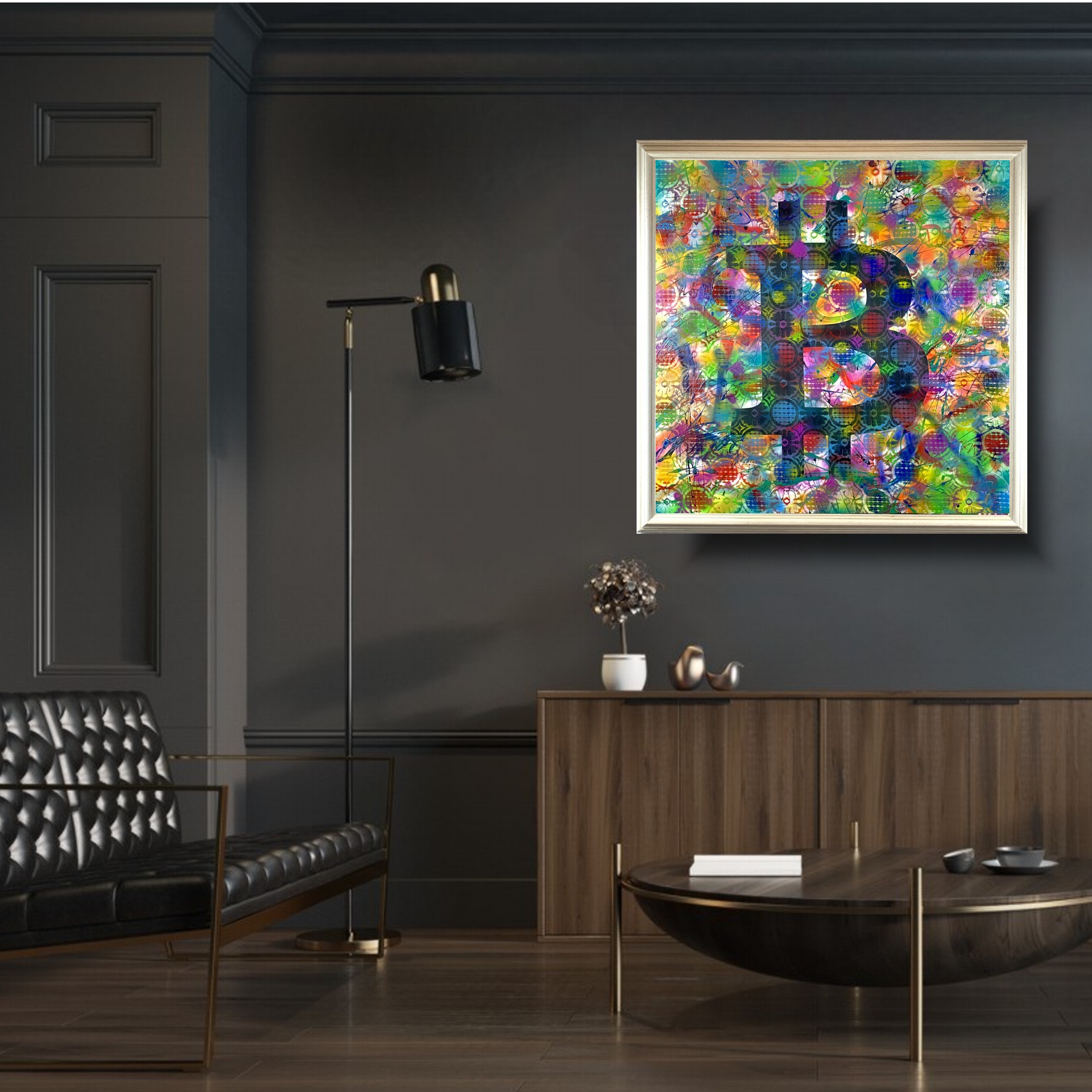 Duży obraz "Złoty bitcoin" abstrakcja w złotej ramie 2108A