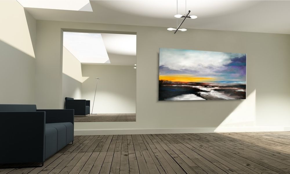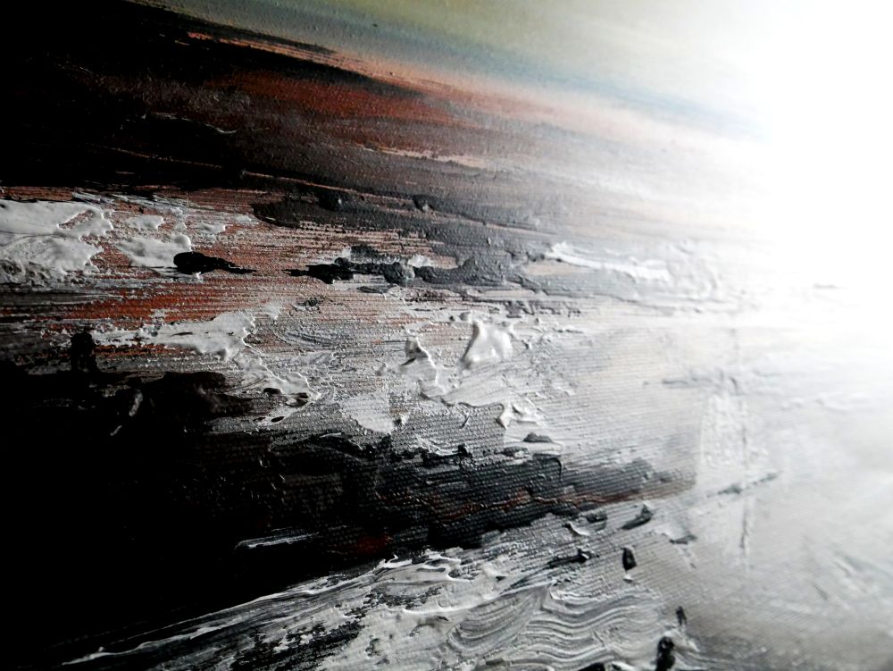 Obrazy do salonu pejzaż marynistyczny „Nadzieja” 1825A naszego autorstwa w spokojnej, stonowanej kolorystyce. Kolory użytej farby akrylowej dodają tajemniczości.