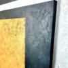 Obraz ręcznie malowany na płótnie „Gold cube” to obraz ręcznie malowany z dominującymi elementami w złotym kolorze. Format obrazu to dwie części w orientacji pionowej – komplet dwuczęściowy – dyptyk. Idealne dopełnienie minimalistycznego salonu