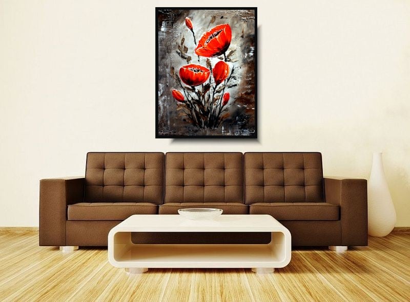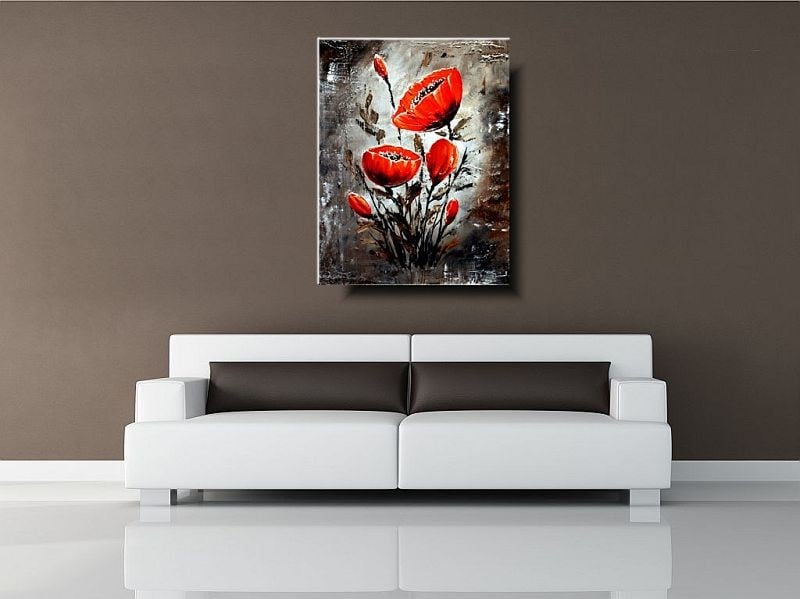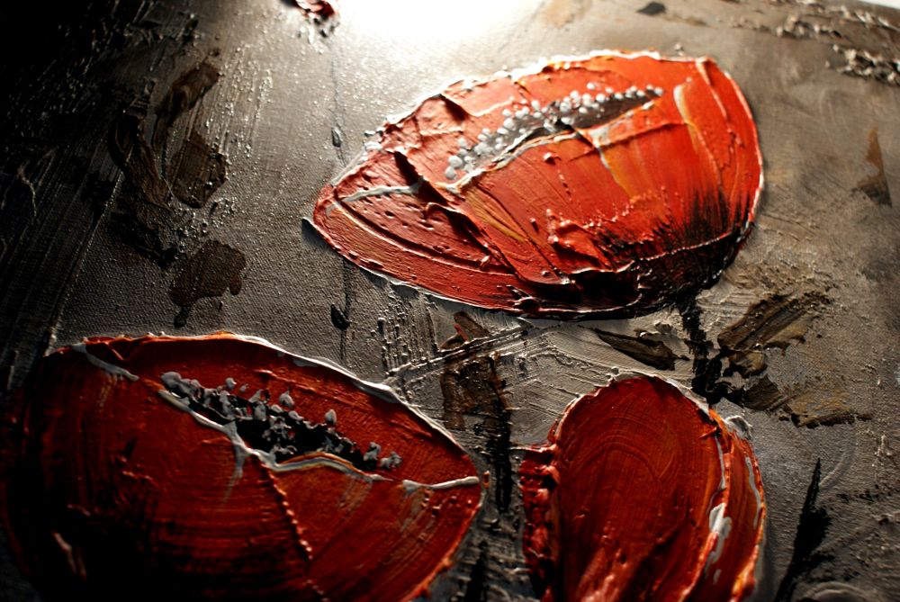 Obraz kwiaty „Bajeczne czerwone maki” w odcieniach czerwieni, szarości i brązu. Idealnie pasuje do wnętrza – salonu, sypialni, przedpokoju czy biura. Oprócz standardowej farby używamy często zaskakującej techniki oraz tworzyw malarskich. Posiadamy wiele modnych wzorów oraz klasycznych motywów – obrazy kwiaty, obrazy drzewa, obrazy pejzaż, obrazy abstrakcje, obrazy anioły. Gdyby jednak zamarzyło się Państwu coś zupełnie odmiennego – malujemy także obrazy na zamówienie, portret na zamówienie.