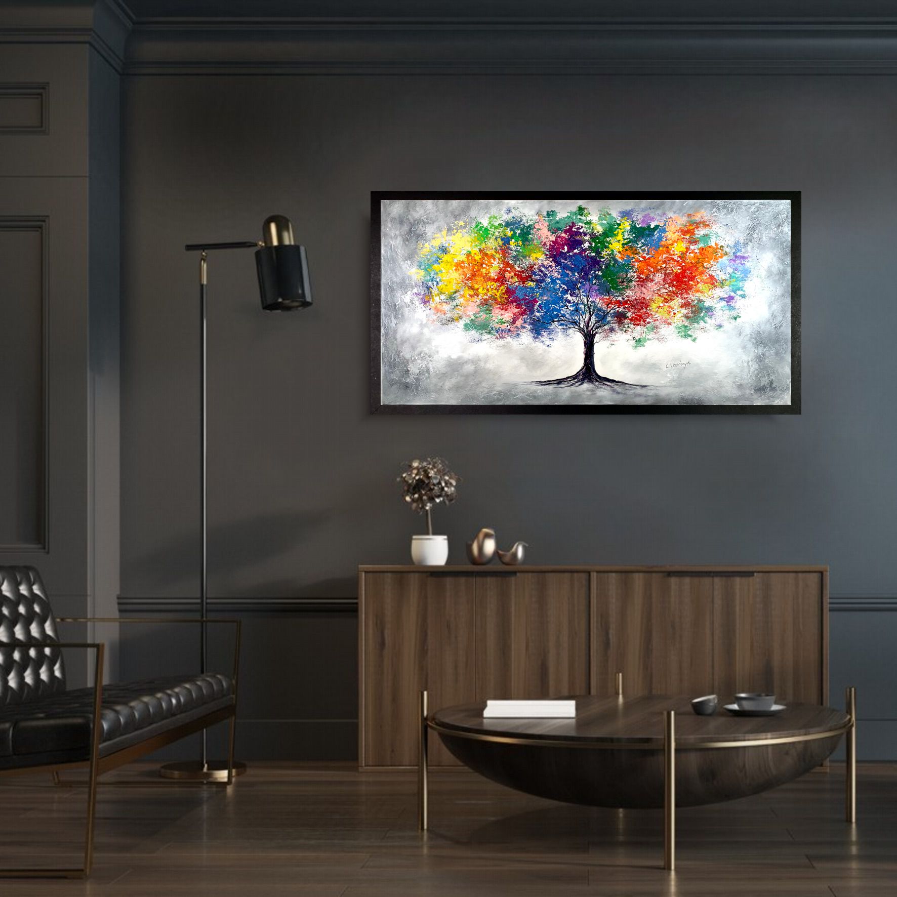 Obraz kolorowe drzewo składa się z 1 części + rama w komplecie