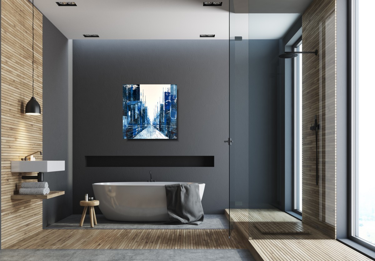 Obraz ręcznie malowany na płótnie „Lodowe miasto” 2211A to obraz, który wizualnie oddaje siłę koloru i faktury. Jest to jakby zapis energii i chwili zamykającej się w warstwach farby. To dzieło sztuki, które mówi zarówno o ruchu, jak i spokoju, jednocześnie zachęcając do refleksji nad pięknem abstrakcyjnej ekspresji. Niebieski obraz miasta przenosi nas w świat ekspresji, gdzie strukturalne warstwy farby tworzą dynamiczną kompozycję. Malowanie szpachelką nadaje dziełu teksturę i trójwymiarowy charakter, tworząc wrażenie ruchu i energii.