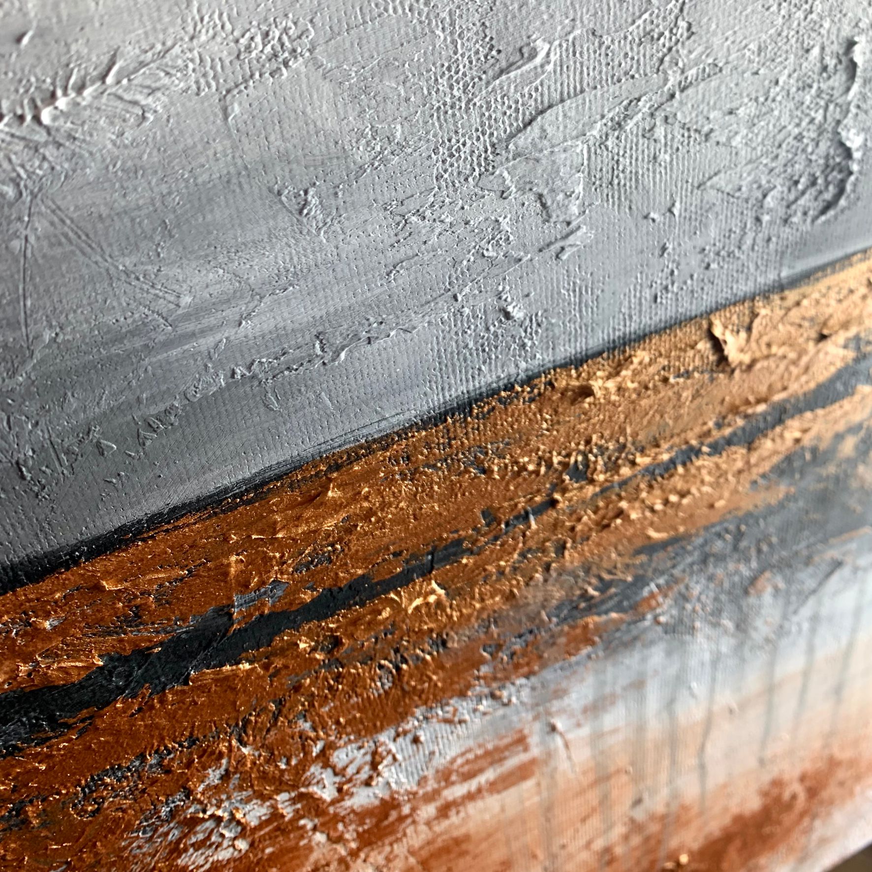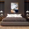 Obraz ręcznie malowany na płótnie „Jesienna nostalgia” to spokojny, elegancki obraz abstrakcyjny w ciepłej tonacji barw z dodatkiem koloru miedzianego. Bardzo nowoczesny obraz ręcznie malowany. Abstrakcyjny obraz do modnego salonu lub sypialni.