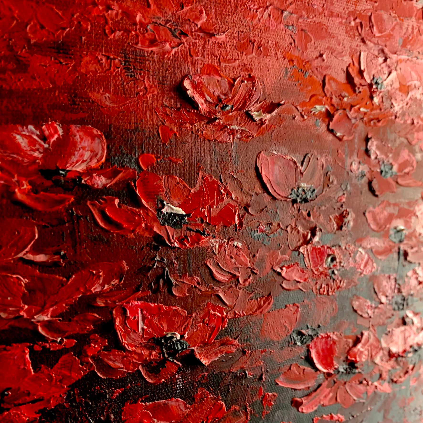 Kolorystyka obrazu: czerwony, różowy, szary, biały, czarny + srebrna przecierana rama (szerokość listwy 4cm)