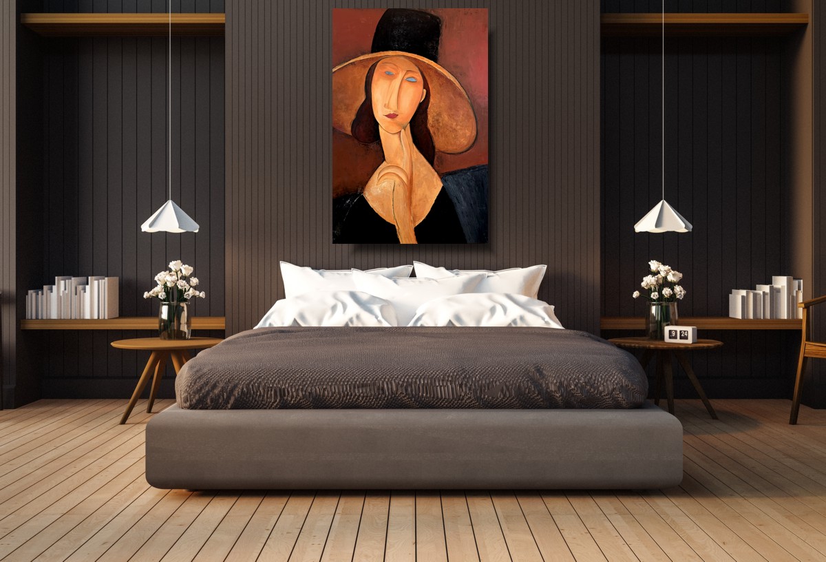 Reprodukcja obrazu pt: “Portret kobiety w kapeluszu” Amedeo Modigliani, wymiar oryginału 55cm x 38cm, namalowanego w 1917r, w tej chwili w kolekcji prywatnej.