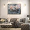Obraz ręcznie malowany na płótnie „Polne kwiaty” 2296A to bardzo delikatny i stonowany obraz z pięknymi kwiatami dopełniony ramą typu american box w naturalnym kolorze drewna.