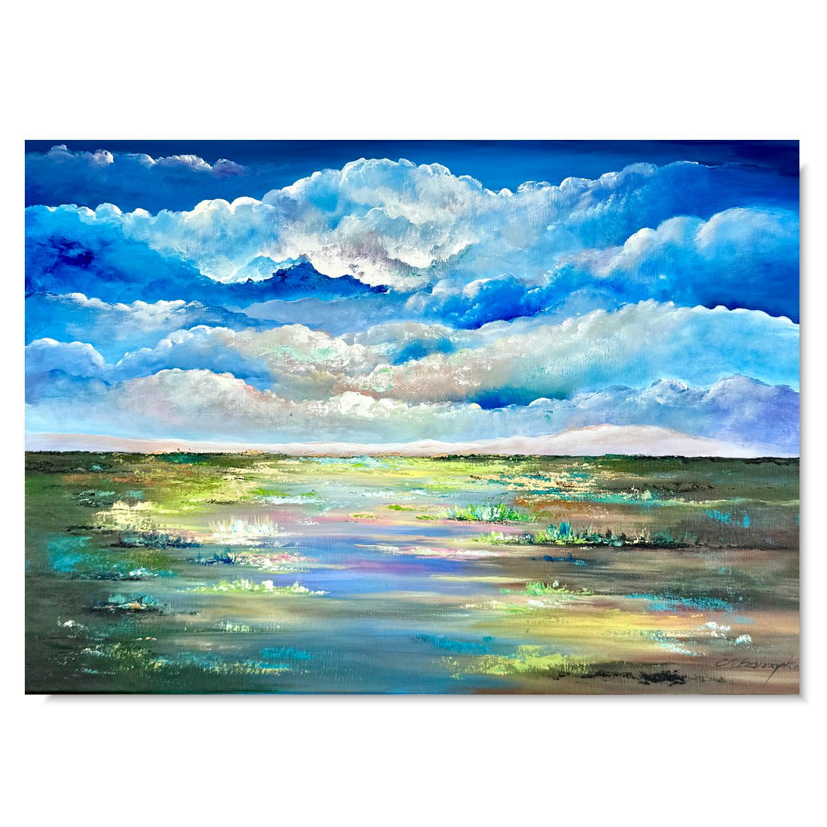Obraz ręcznie malowany na płótnie „Chmury nad rozlewiskiem” 2146A wyróżnia się pięknym motywem kłębiastych chmur. Motyw nawiązuje do sielskiej spokojnej wycieczki za miasto, Obraz można podarować najbliższej osobie. Cudowny obraz będzie idealnym pomysłem na prezent dla mamy, żony lub szefowej.