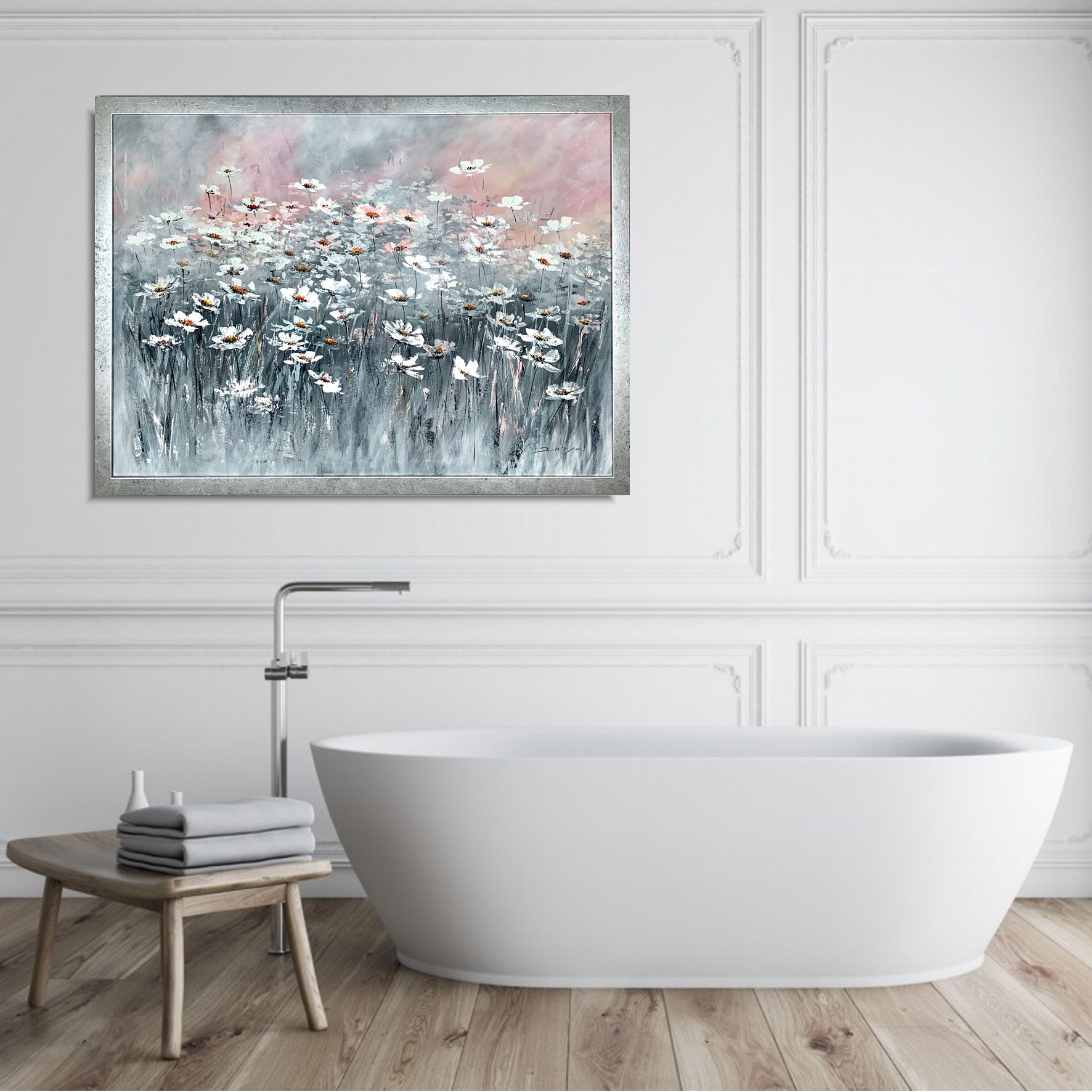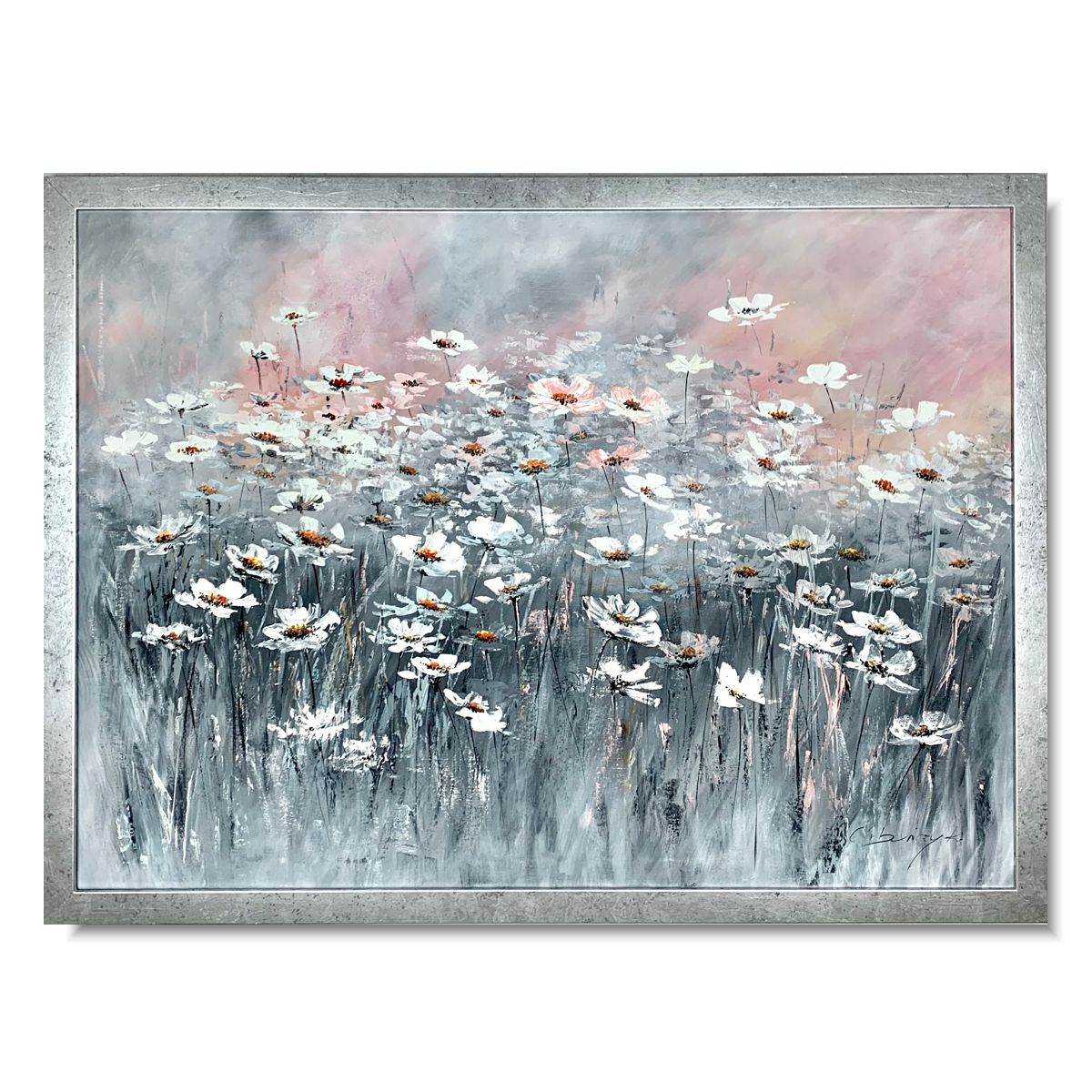Obraz z kwiatami rumiankowe pole składa się z 1 części + rama w komplecie (listwa szerokości 4cm)