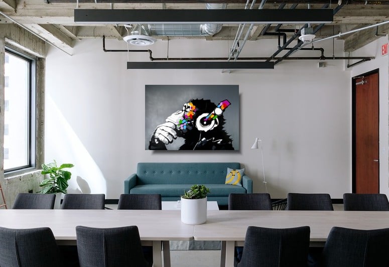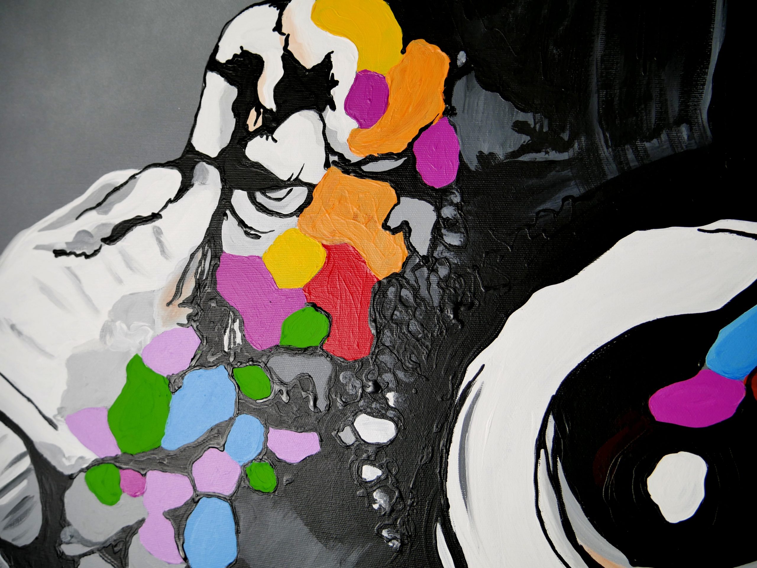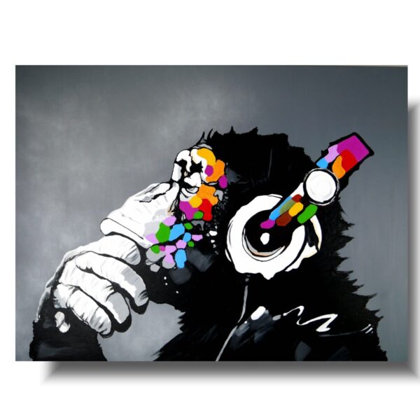 Obraz abstrakcja kolorowy szympans naszego autorstwa to dokonała dekoracja domu i mieszkania w ciekawej stylizacji. Kolory użytej farby akrylowej dodają pozytywnej energii i wprawiają w dobry humor. Abstrakcja ta, to esencja najnowszych trendów. Idealnie ozdobi nowoczesny salon czy modne biuro. Możemy namalować inne obrazy ze zwierzętami – obrazy z kotami, obrazy z psami, obrazy z ptakami, obrazy z motylami.