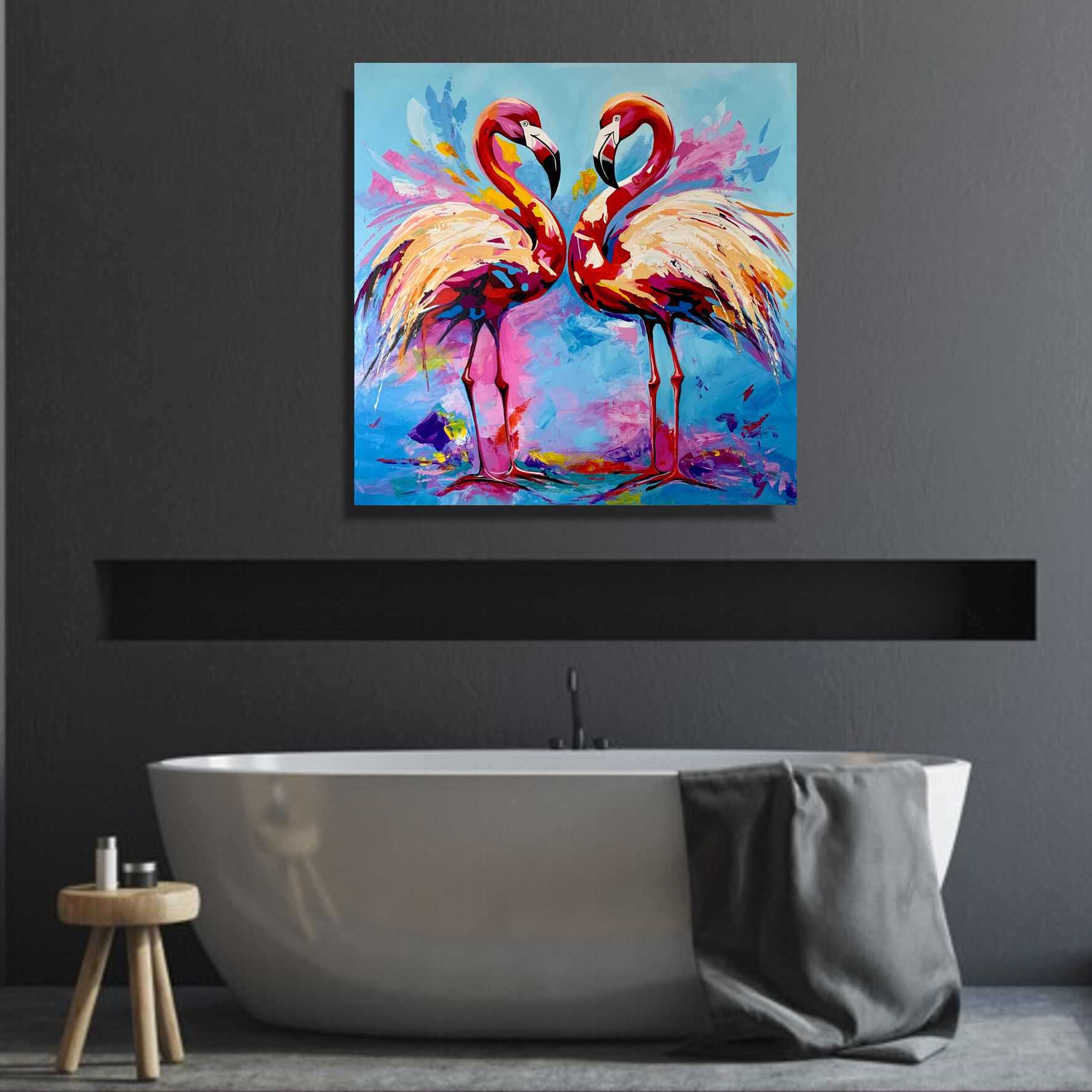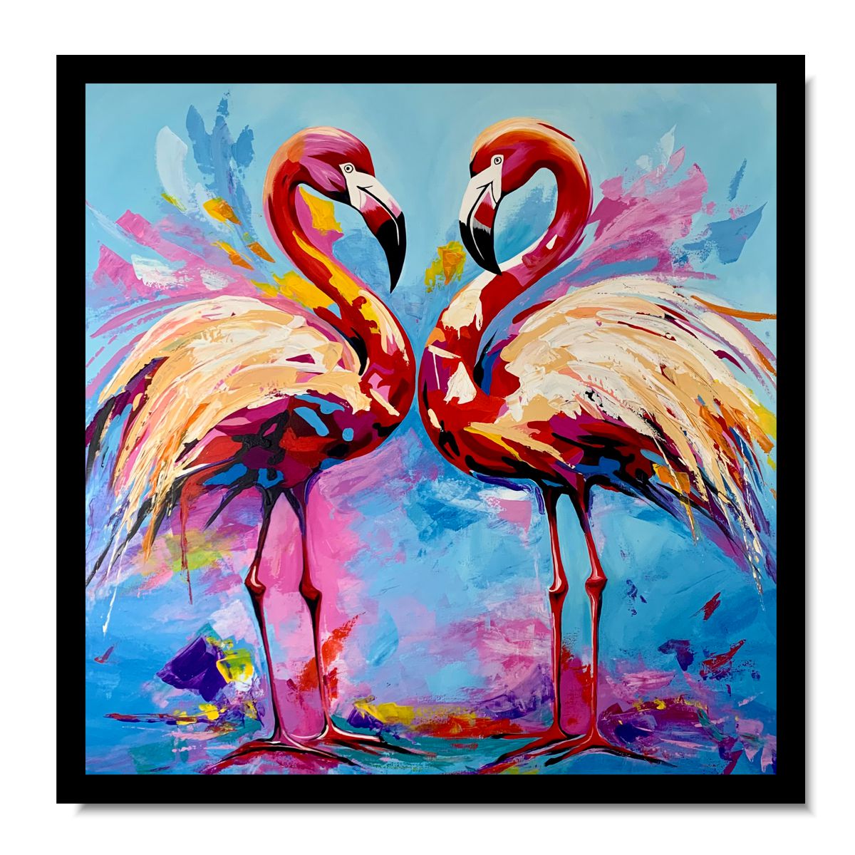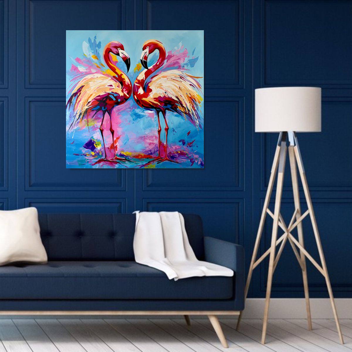 Obraz ze zwierzętami ręcznie malowany „Flamingi” 2285A – jako symbol miłości – dwa ptaki ułożone razem w charakterystyczne serce. Te zwierzęta symbolizujące miłość, siłę i równowagę uważane są za wcielenie egipskiego boga Ra. W naszym obrazie odnajdziecie Państwo nowoczesne ujęcie formy w połączeniu z symbolem emocji.