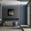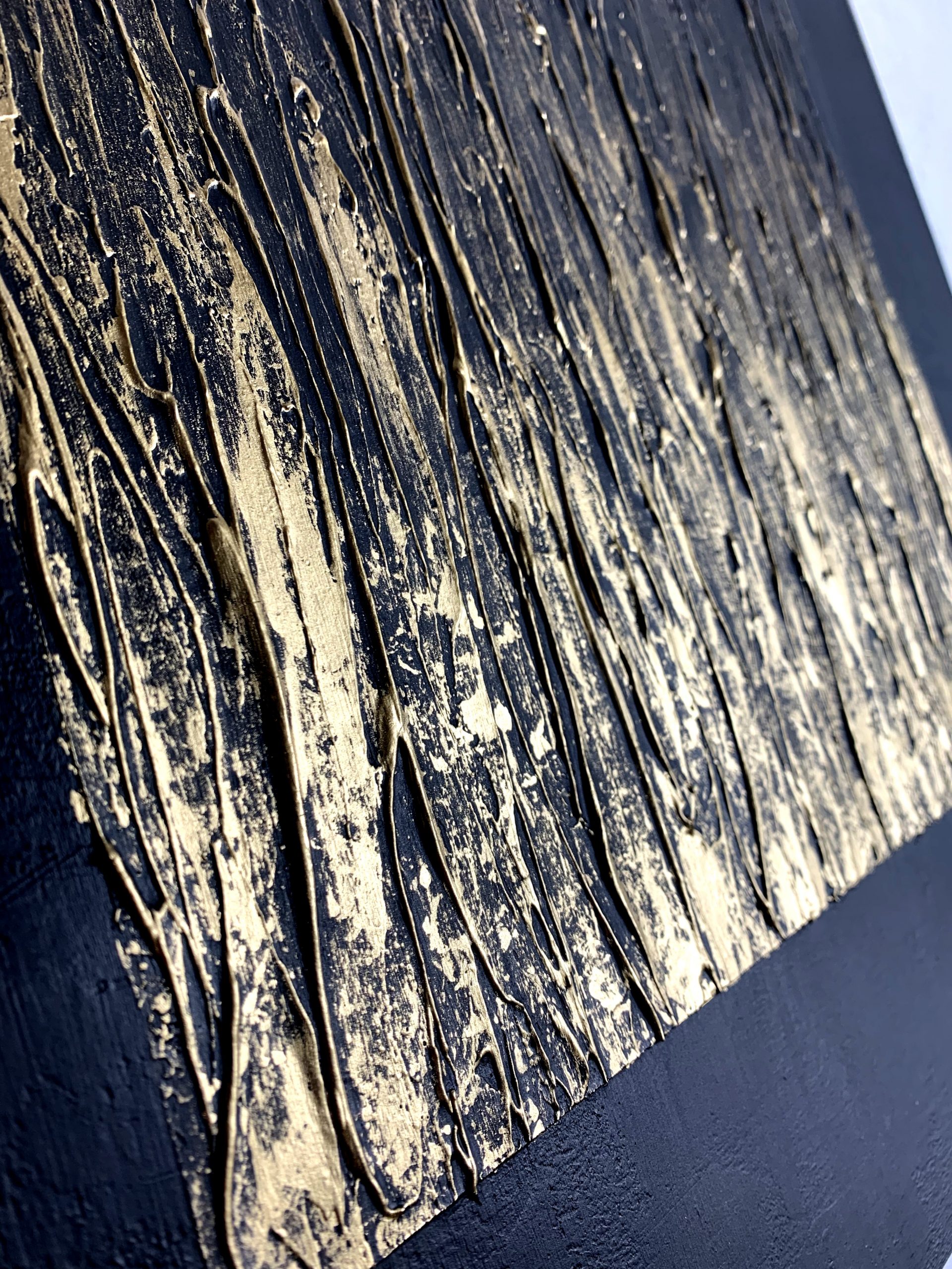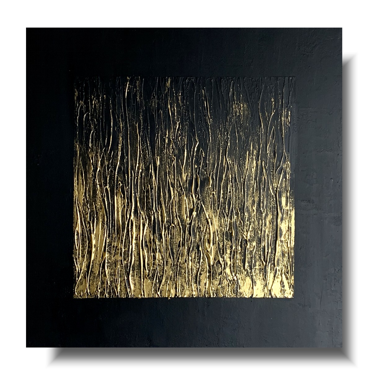 Obrazek do salonu „Złoty płomień” abstrakcja 3D 2190A to mała minimalistyczna abstrakcja w czarnym kolorze ze złotym płomieniem. Abstrakcja ręcznie malowana w minimalistycznej, ale eleganckiej formie. Abstrakcja to nasza specjalność.