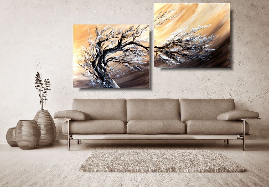 Obraz drzewo wiśni dyptyk składa się z 2 części stanowiących komplet.