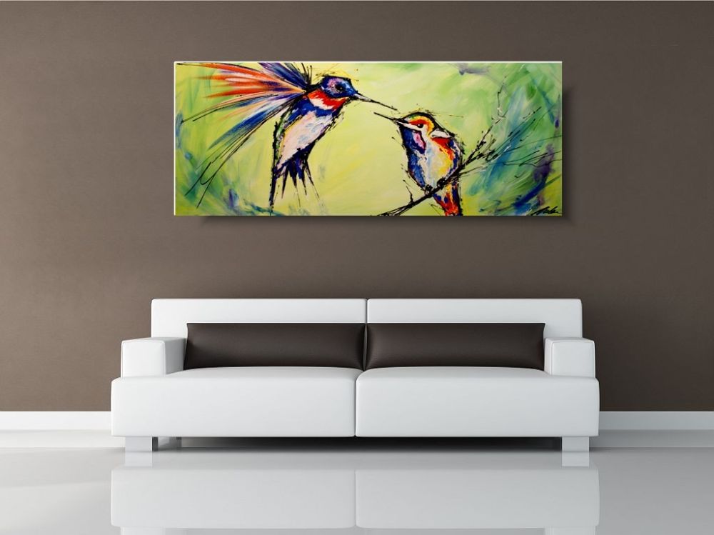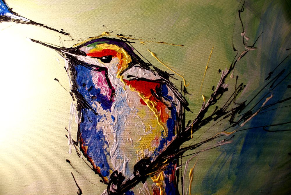 Obrazy ręcznie malowany na płótnie „Wróbelki” 1727A w bajecznej kontrastowej kolorystyce. Idealna dekoracja dziecięcego pokoju.