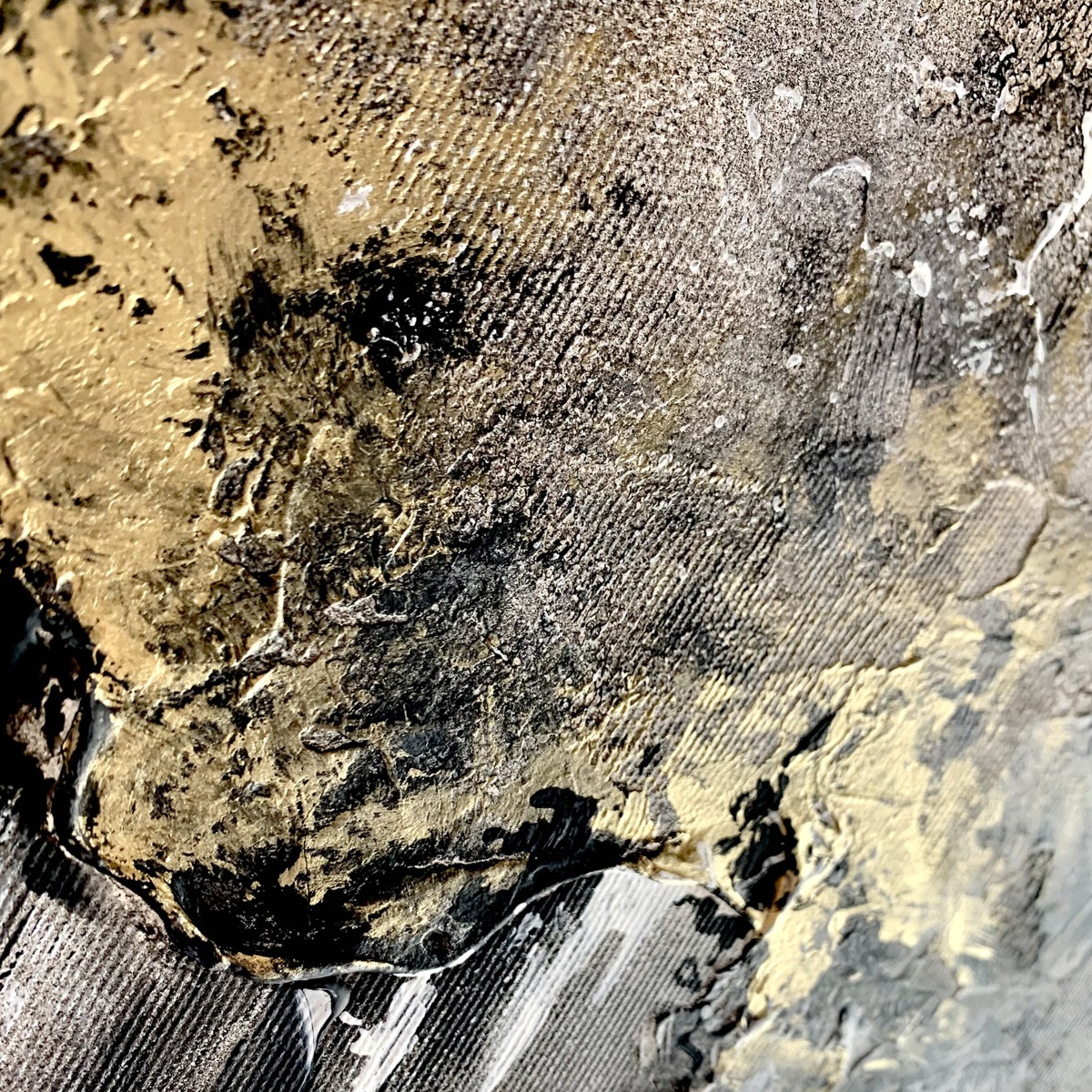 Kolorystyka obrazu: złoty, beżowy, szary, biały, czarny. Boki obrazu wykończone w kolorze dzieła
