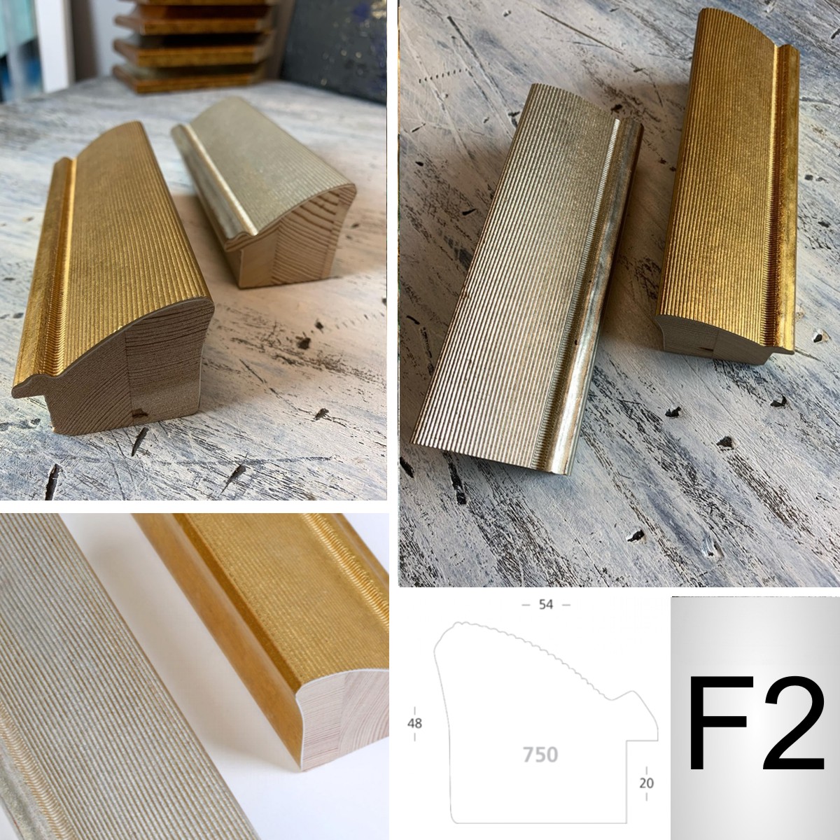 Rama do obrazu ryflowana złota i srebrna (F1 i F2) – Nowoczesna wąska rama w kolorze złotym pasuje zarówno do klasycznych jaki i do nowoczesnych obrazów.