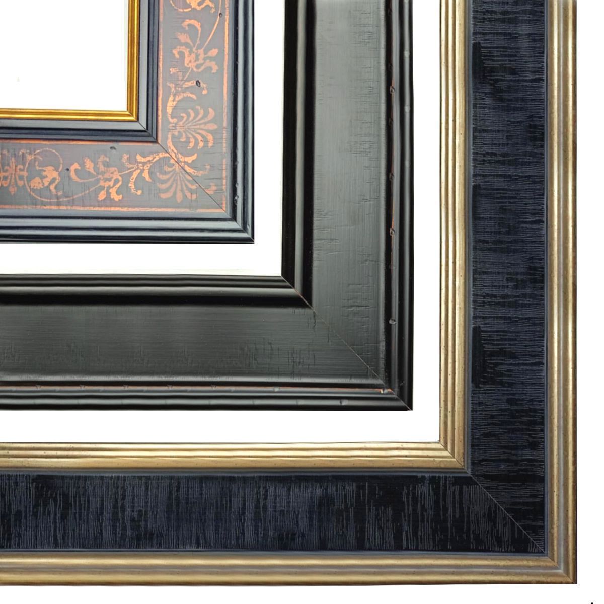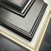 Szeroka drewniana rama do obrazu obniżony środek (AP16)– Rama klasyczna prosta, z obniżonym środkiem, szeroka, imitacja kornika – czarna wzór, czarna, srebrna tłoczony środek.