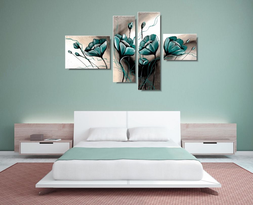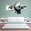 Turkusowe kwiaty obraz składa się z 4 części stanowiących komplet.