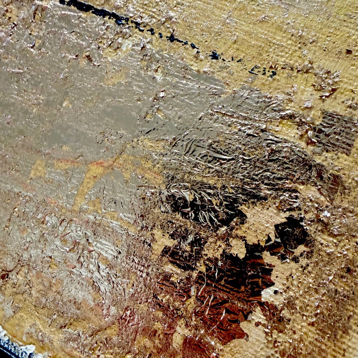 Faktura: Strukturalna powierzchnia + złote płatki