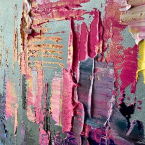 Obraz ręcznie malowany na płótnie “Pastelowe miasto” to miasto zainspirowane Bosą, pastelowym miasteczkiem na Sardynii, w prowincji Oristano. Surrealistyczne ujęcie architektury, gdzie abstrakcyjne formy i kolorowe plamy tworzą dynamiczną symfonię daje wrażenie kompozycji, która w niezwykle lekki sposób oddaje pulsujący rytm współczesnego życia miejskiego, jednocześnie podkreślając złożoność i różnorodność tego świata. Na płótnie widzimy wirujące kształty, które nawiązują do wieżowców, ulic, neonów i innych elementów miejskiej scenerii. Kolory splatają się w soczyste plamy, tworząc wrażenie energii i ruchu. Abstrakcyjne ujęcie miasta symbolizuje zgiełk, różnorodność, a także anonimowość współczesnego życia. Formy, które łączą się i rozchodzą, tworzą złożoną opowieść o dynamice miejskiego otoczenia.