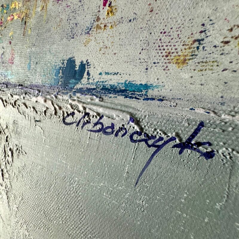 Obraz ręcznie malowany abstrakcja “Kolorowe miasto w oddali” 2177A